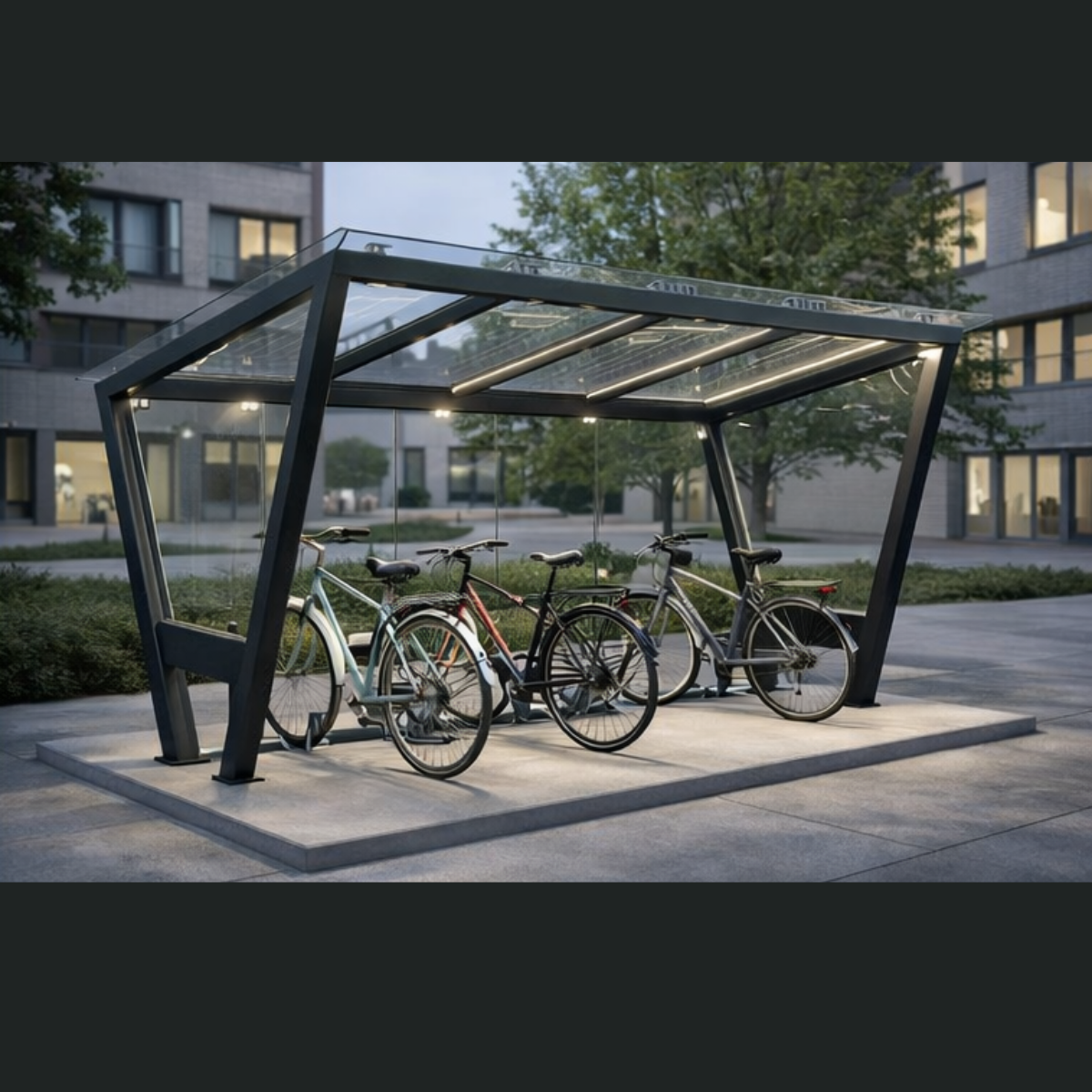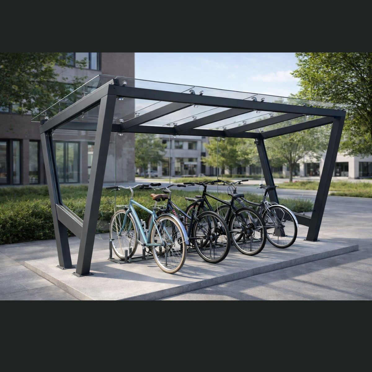 Adăpostul pentru biciclete Model V1 este o soluție profesională de mobilier urban, proiectată pentru spații publice, zone rezidențiale, școli, instituții de învățământ, centre comerciale și campusuri, oferind protecție eficientă, durabilitate ridicată și un design contemporan, adaptat mediului urban modern.