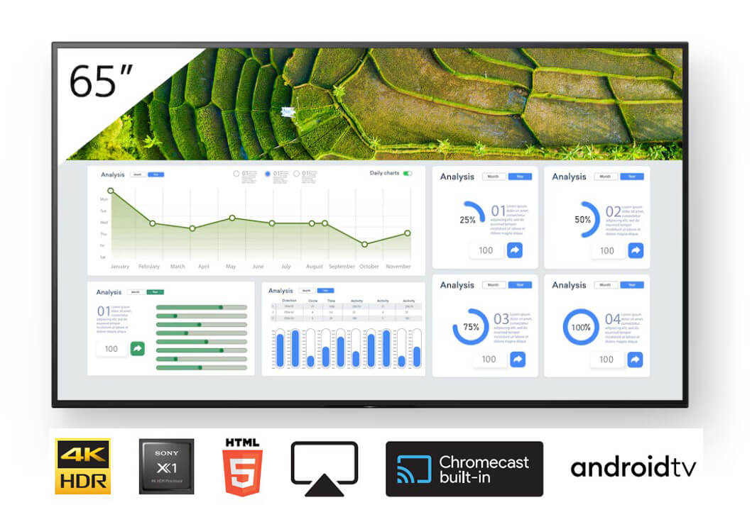 Noua noastră gamă de monitoare BRAVIA Professional Display încorporează toată calitatea imaginii, flexibilitatea de instalare, robustețea utilizării și cerințele de durabilitate necesare pentru aplicațiile comerciale actuale.