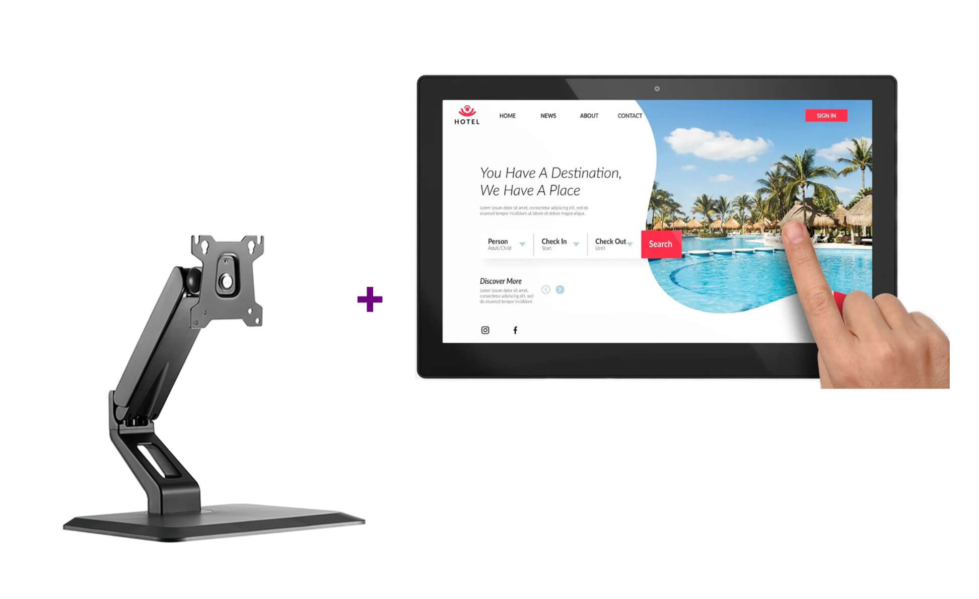 Pachet interactiv format din Display EvoBoard THD1562 touch 15.6″ si Suport monitor reglabil Blackmount LDT35-T01